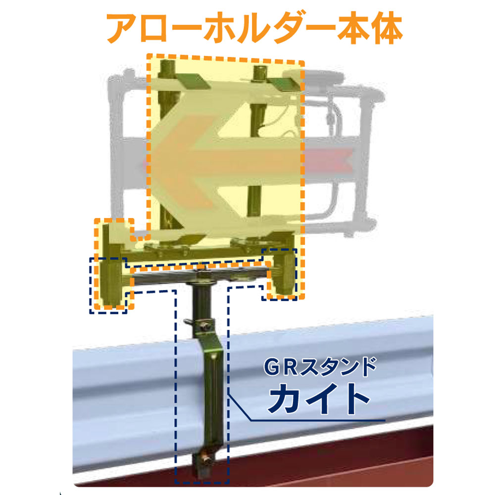 矢印板固定金具・565mm×658mm(ガードレールスタンド+矢印板固定金具セット/アローホルダー) LED矢印板固定金具、矢印板ガードレール用取付金具、LED矢印板取付金具