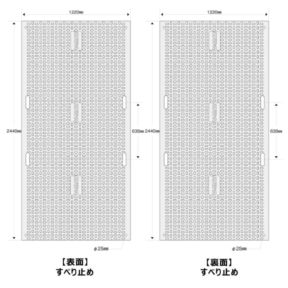 プラスチック敷板・ブラック・1220mm×2440mm×厚さ12.7mm+両面オーバル4mm×2・離島以外送料無料(持ち手4カ所/V-MAT) 安全用品 保安用品 樹脂製マット 敷板 軽量敷板 プラスチック敷板 敷板プラスチック