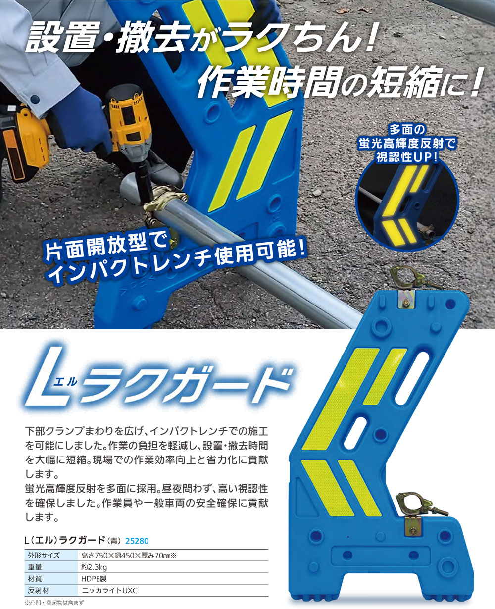 単管バリケード・ブルー(高輝度反射シート付/Lラクガード)(安全用品・保安用品・バリケード・単管バリケード)