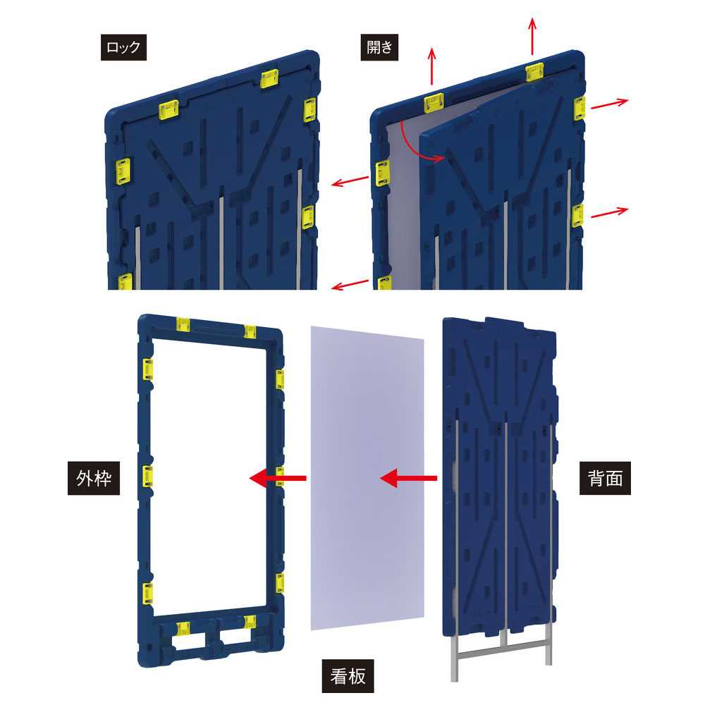 樹脂製看板枠・1100mm×1400mm用(超高分子量PE/枠のみ) 工事看板 看板枠 樹脂製工事看板枠 工事看板用枠 作業看板用枠 樹脂枠