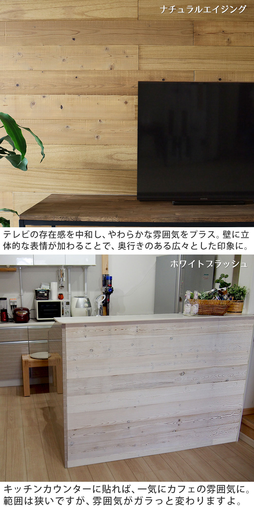 壁に貼れる天然木パネル・11枚組(約1.66m2)ホワイトブラッシュ (シール付/SLDC-11P-P003WHT) 壁面パネル 貼れるパネル 天然木 接着剤仕様 DIY