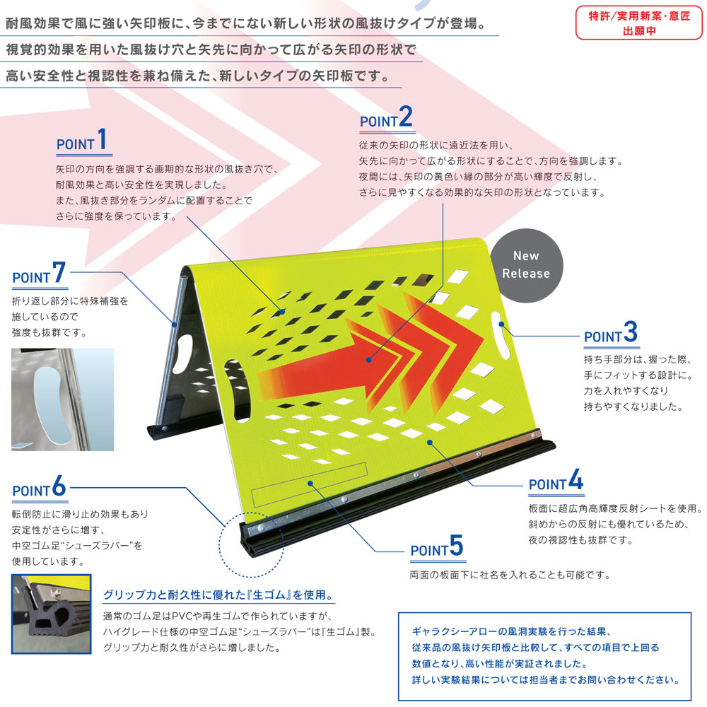風抜け山形矢印板・600mm×900mm・黄/赤矢印(アルミ製/プリズム高輝度)(安全用品・保安用品・アルミ製メッシュ矢印板・公団型矢印板)