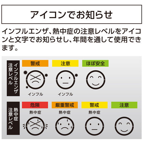 ●熱中症注意レベル:4段階●インフルエンザレベル:3段階