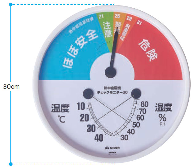 熱中症環境チェックモニター30 看板・熱中症を防ごう・注意/警戒/厳重警戒/危険・600×450(温湿度計付/屋内外用/N25-13)(安全用品・保安用品・熱中症対策標識・温湿度計付標識)