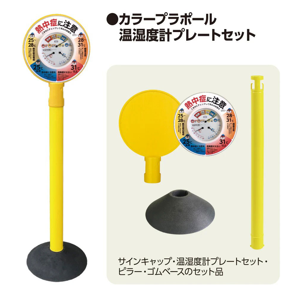 カラープラポール温湿度計プレートセット(サインキャップ/温湿度計プレート/ピラー/ゴムベースセット) 熱中症予防、熱中症対策、温湿度計、カラープラポール