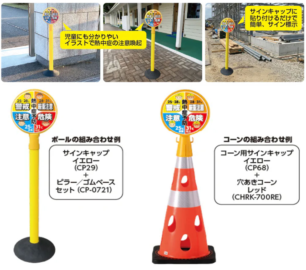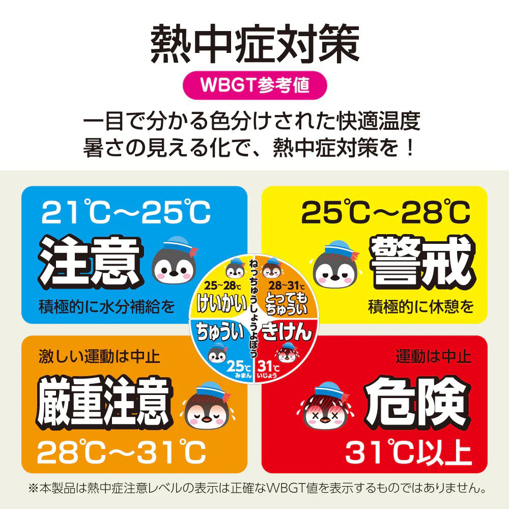 カラープラポールサインキャッププレート・熱中症予防(ペンギン/粘着剤付) 熱中症予防、熱中症対策、WBGT