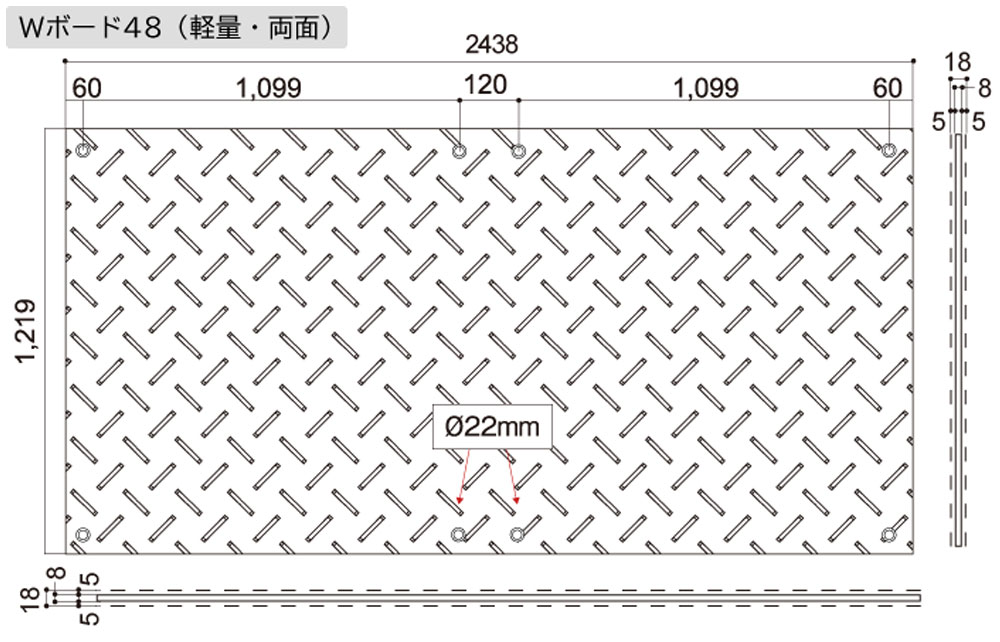 ●接続穴:直径22mm×8カ所(4隅・両サイド中央)